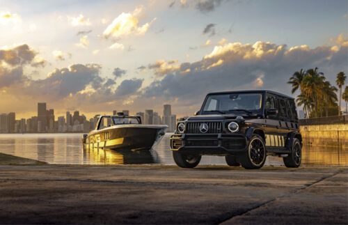 The cars of Mercedes-AMG and the boats from Cigarette Racing, unveil the best of their joint efforts, every year at the Miami International Boat Show. For their 12th collaboration, Mercedes-AMG created a custom G63 Cigarette Edition, while Cigarette Racing crafted a uniquely designed 59' Tirranna AMG Edition.